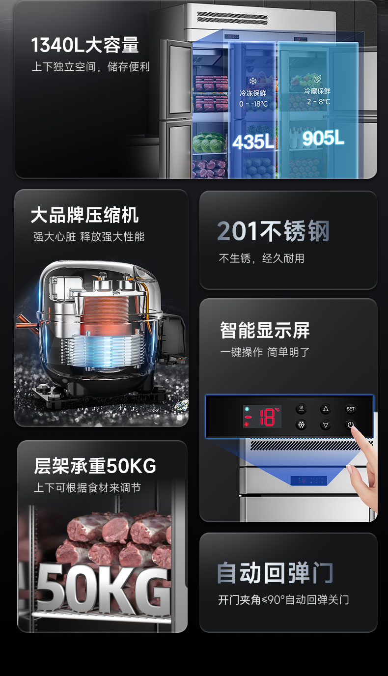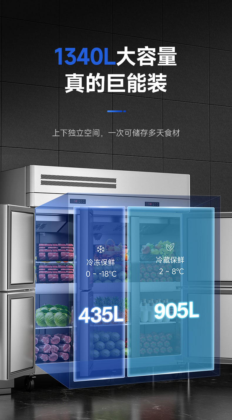 產(chǎn)品容積:冷凍435L+冷藏905L