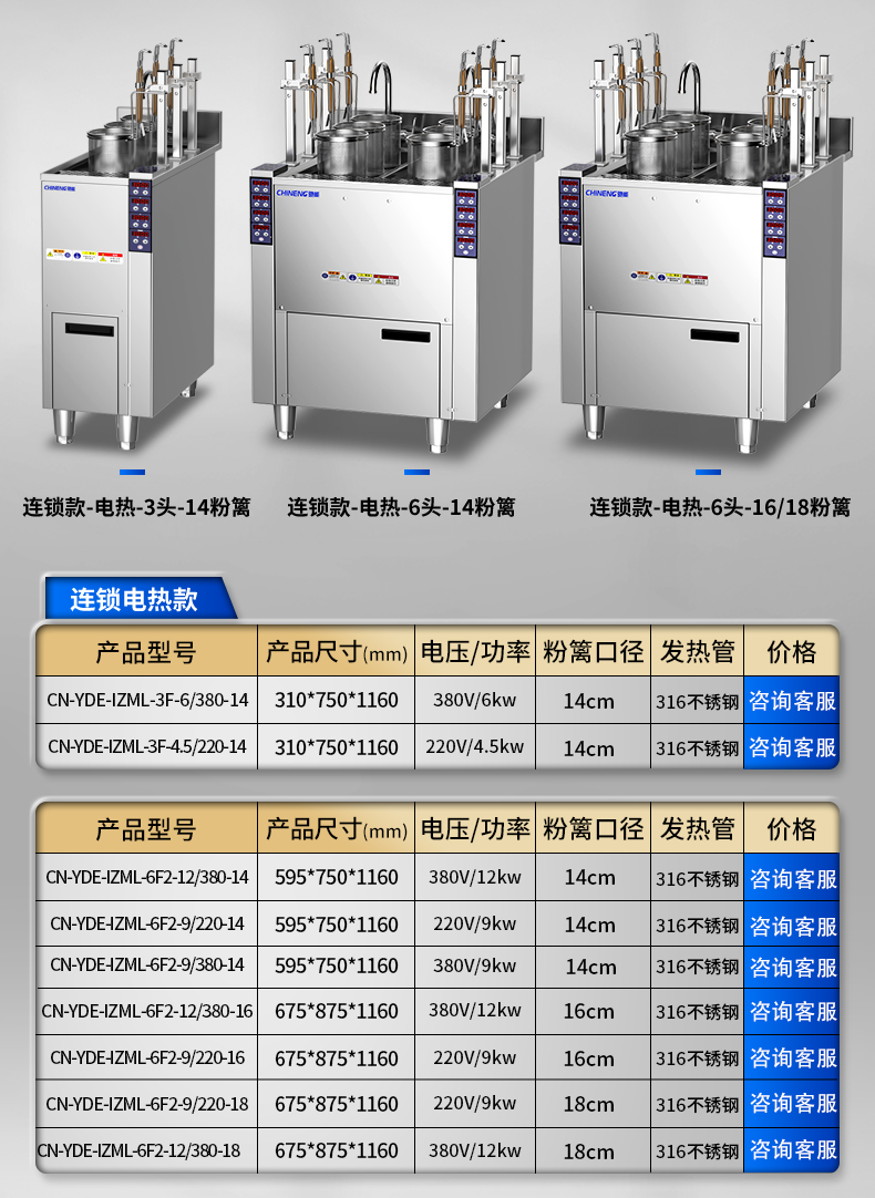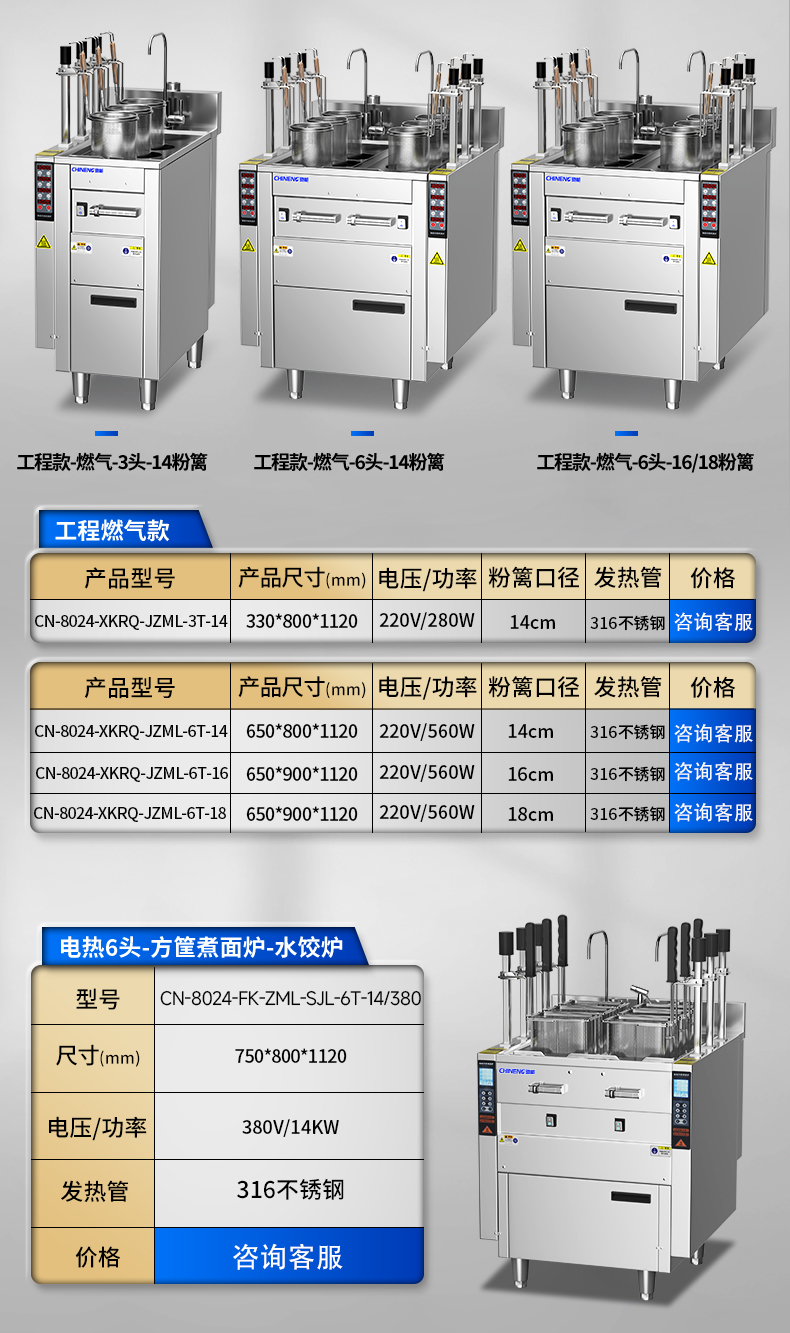 電熱6頭-方筐煮面爐-水餃爐