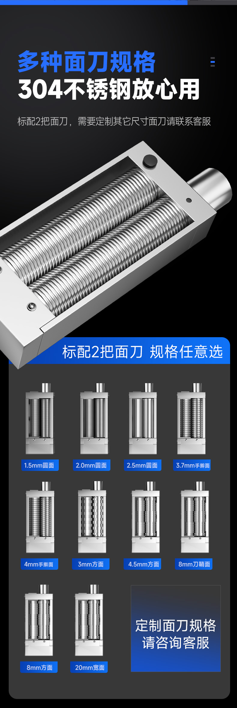 配置:主機+底柜+面桶+2把面刀+水桶(含水桶底座)