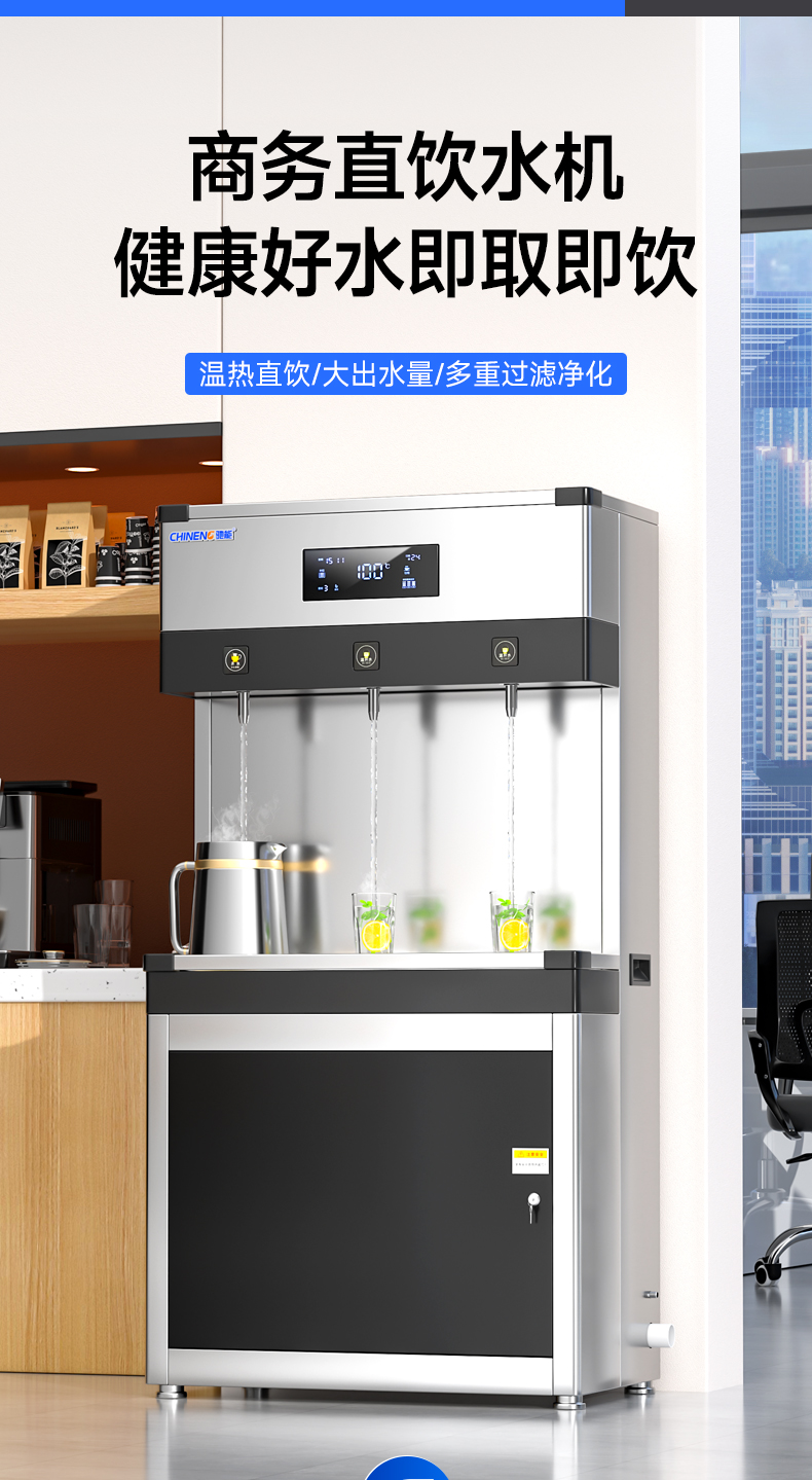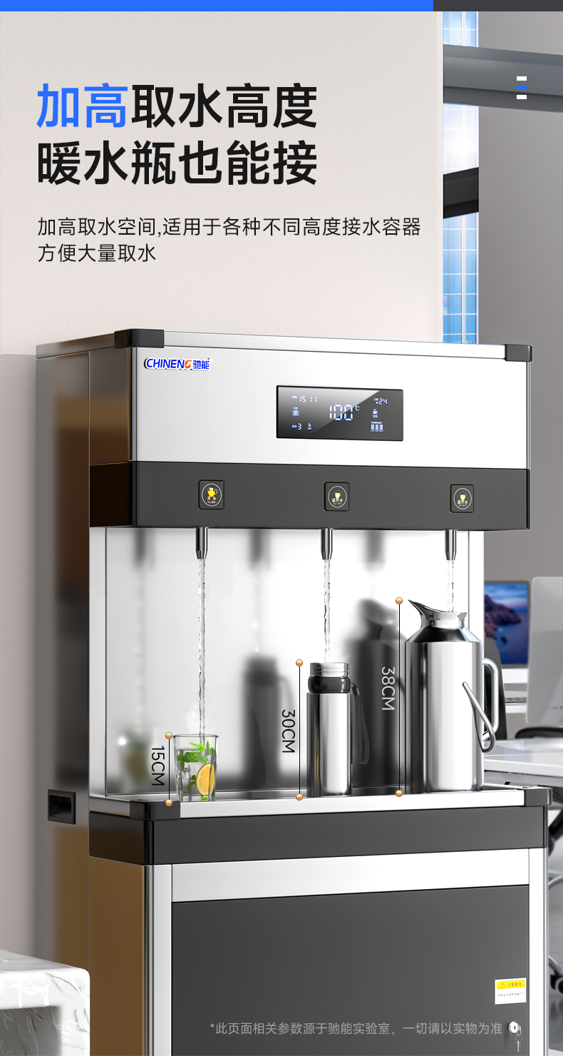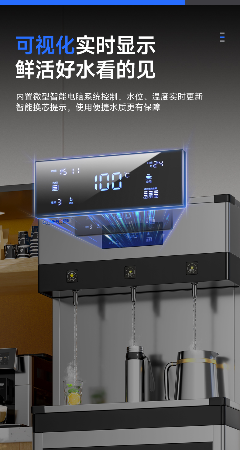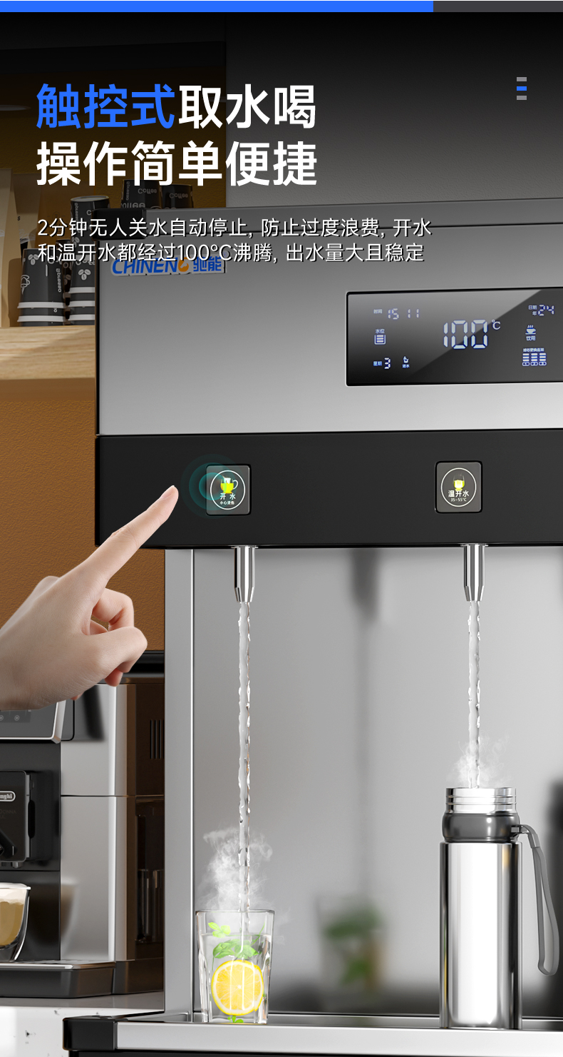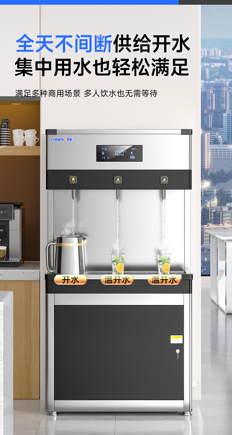 產(chǎn)水量:開水30L/h 溫開水150L/h