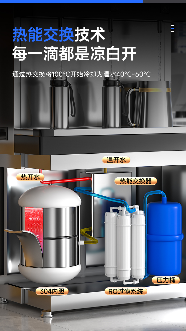 產(chǎn)水量:開水60L/h 溫開水350L/h