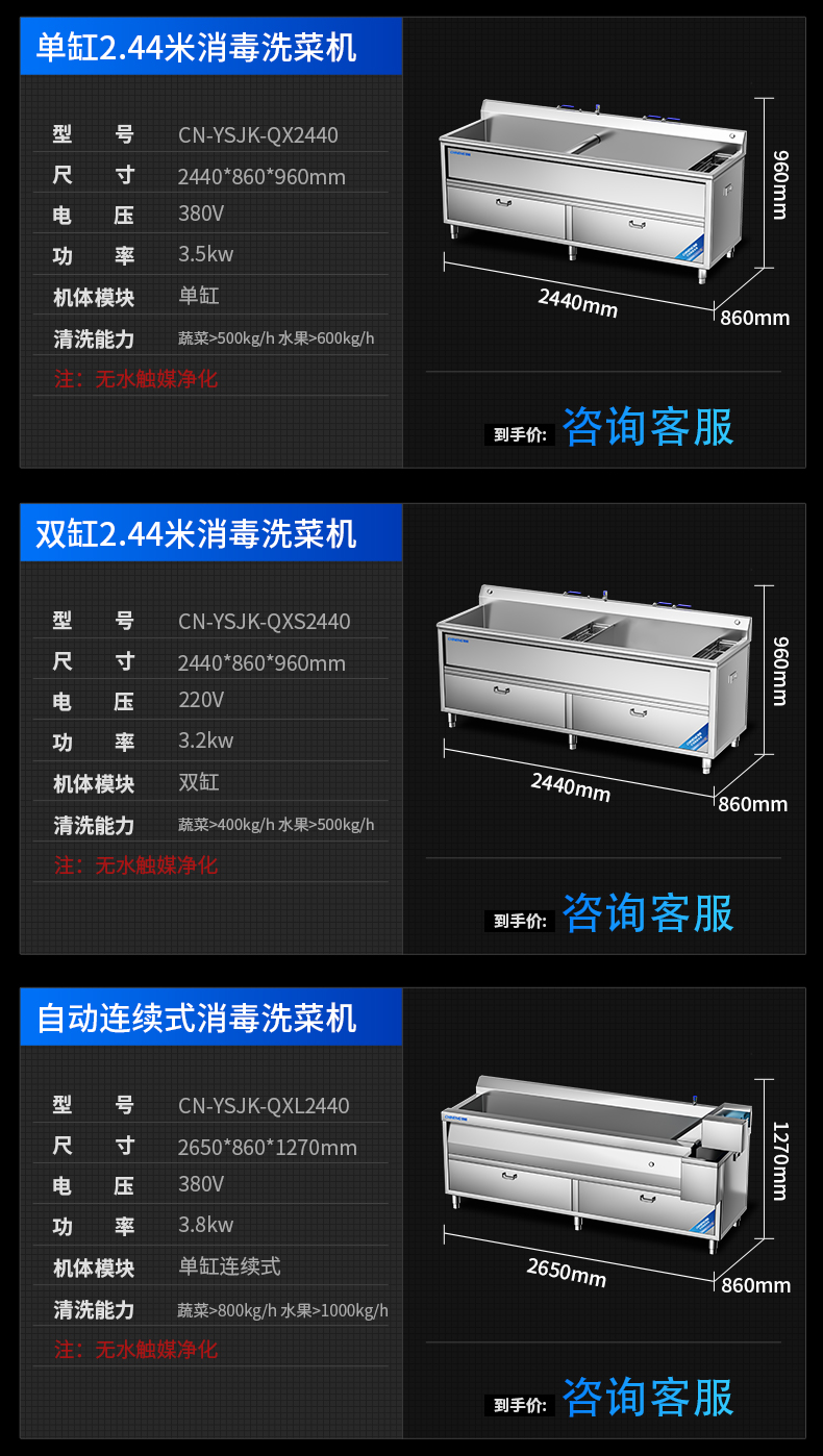 雙缸2.44米消毒洗菜機(無水觸媒凈化)