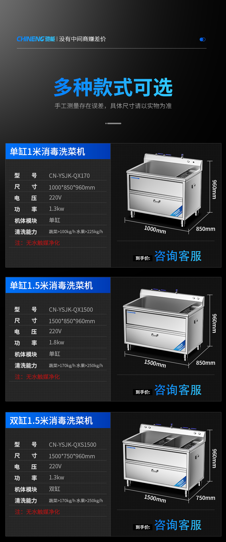 雙缸1.5米消毒洗菜機(無水觸媒凈化)