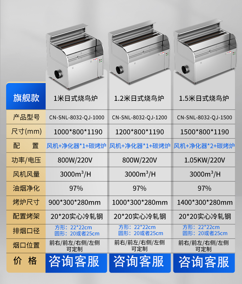 配置:風機+凈化器*1+炭烤爐